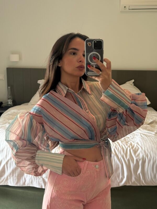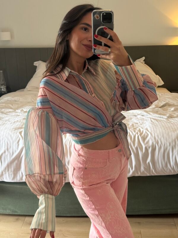 - Lightweight shirt with pastel stripes in pink, blue & mint tones