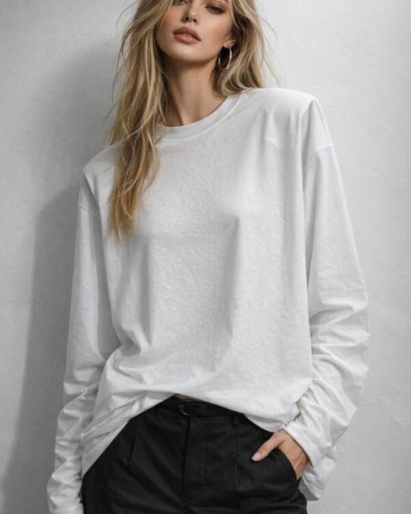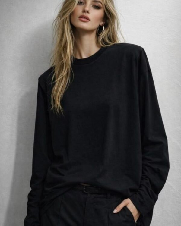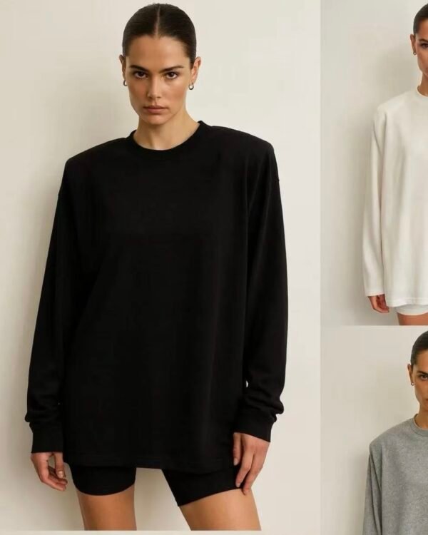 - Premium minimalist T-shirt with built-in shoulder pads for a sculpted silhouette