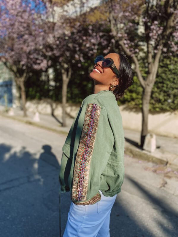 - Decorative embroidered trim along the sleeves for a handcrafted, artisanal feel